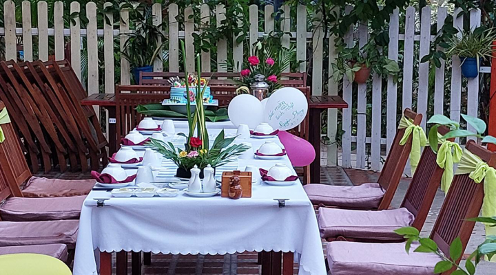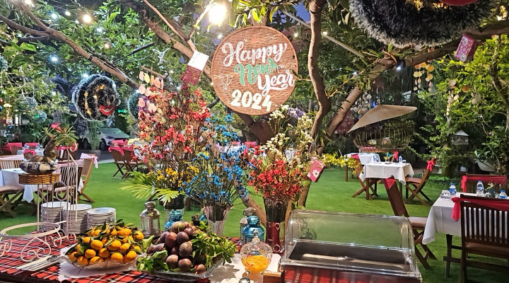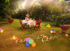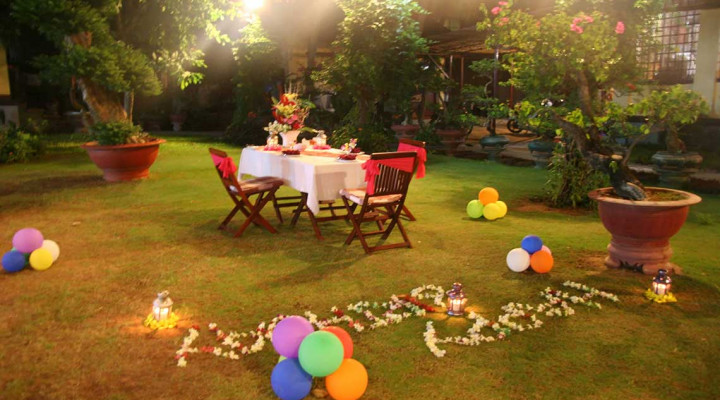 *Birthday and Honey Moon Party: A Table with Flower Decor, 01 Cake, 02 Welcome Drink Glasses, 02 Da Lat Wine Glasses, 04 Main Dishes at BQ Menu.
