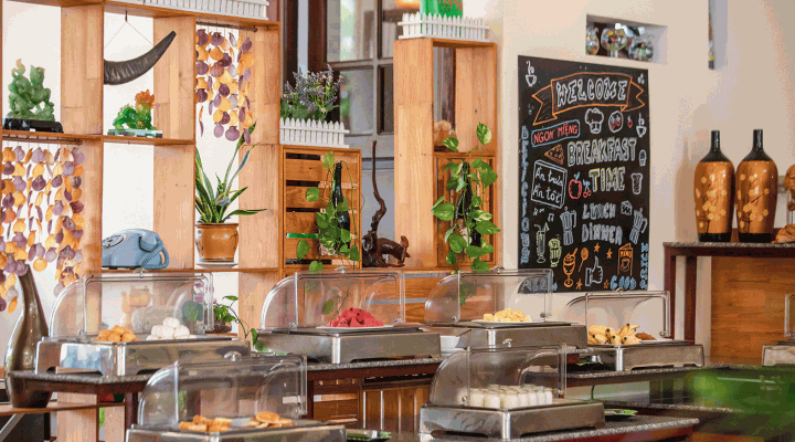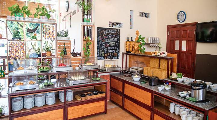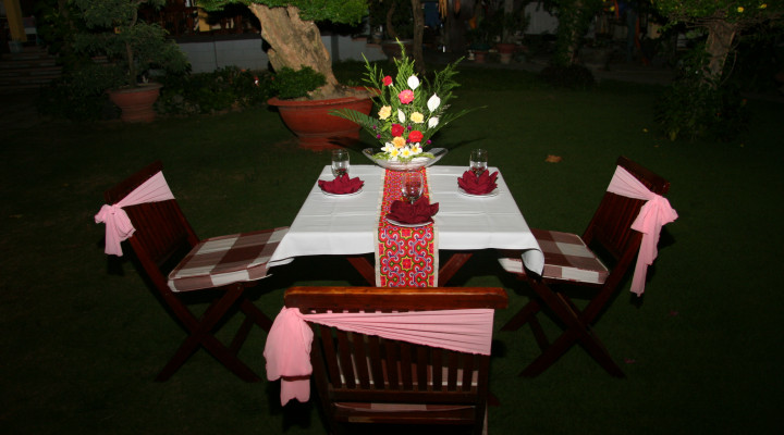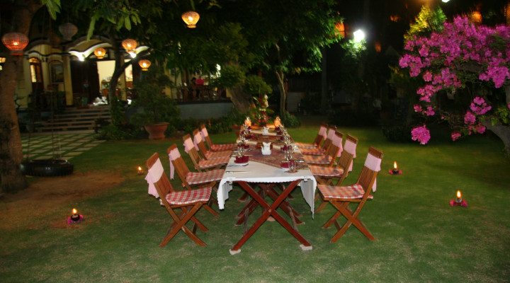 *Open Restaurant: Look at the green leaves, the blue sky, breathe the fresh air and listen to soft music, enjoy either traditionnal Vietnamese or Western Dishes.